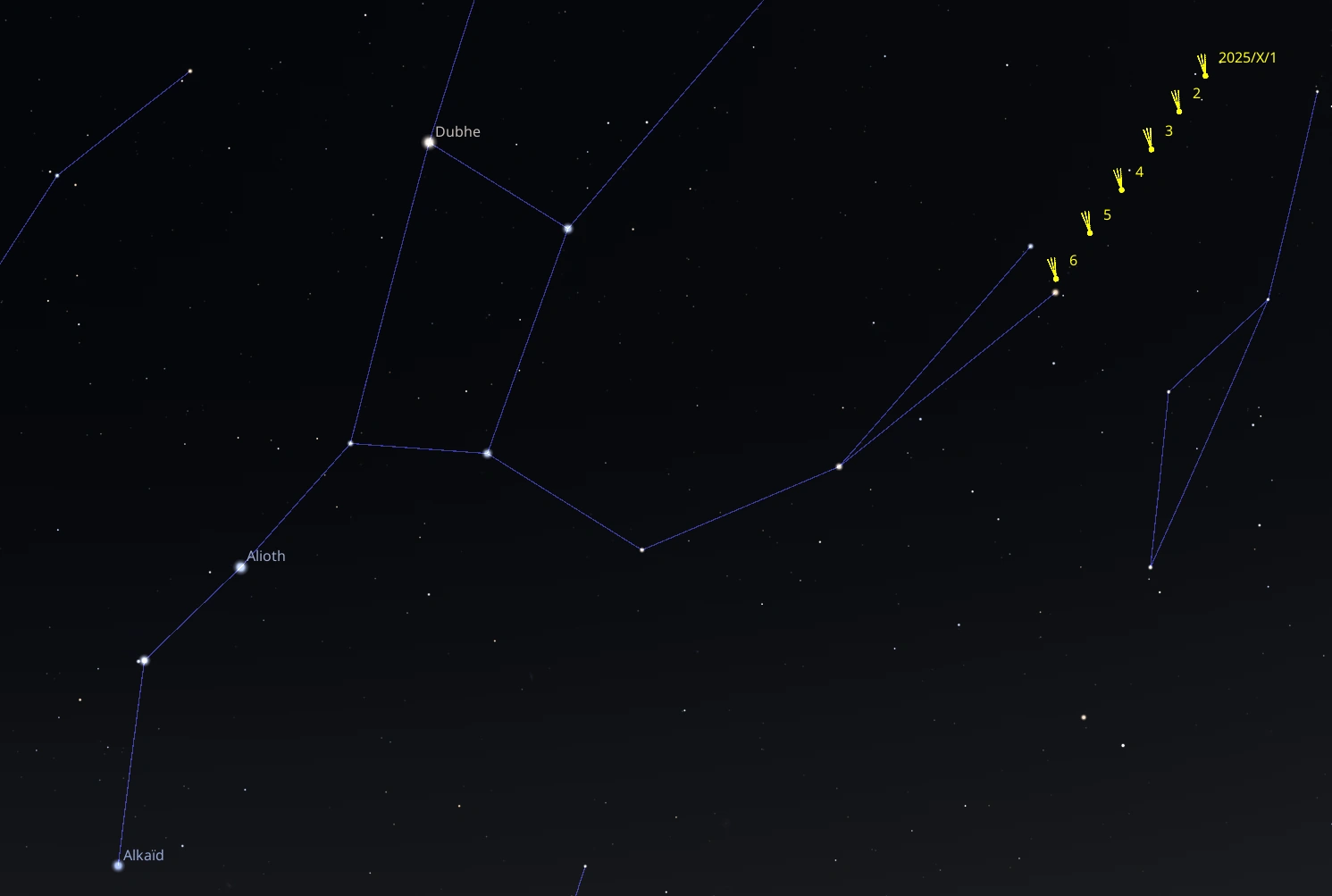 À partir de la mi-septembre et début octobre, la comète Lemmon est observable en seconde partie de nuit jusqu’à l’aube, en France métropolitaine et autres pays de l’hémisphère Nord. Au 30 septembre, son éclat était encore faible mais certains observateurs expérimentés ont signalé l’avoir vue aux jumelles. Pour la trouver, repérez la patte postérieure de la Grande Ourse : la comète s’en approche de jour en jour et l’atteindra le 6 octobre.