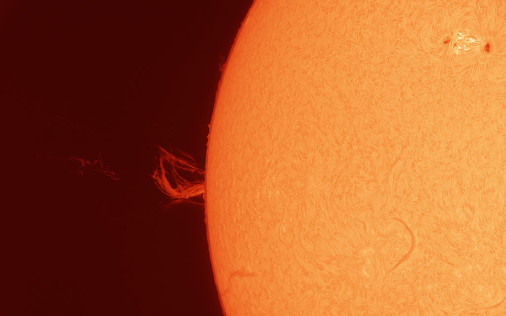 Pour observer les protubérances, on utilise tout particulièrement les filtres H-alpha, c’est-à-dire ceux qui correspondent à la longueur d’onde émise par l’hydrogène ionisé.